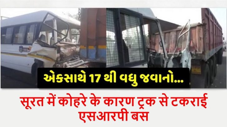 हादसा सुबह कोहरे के कारण किम चार रास्ता के पास सियालज पाटिया के पास हुआ। वडोदरा एसआरपी कैंप से करीब 27 कर्मियों को लेकर बस सूरत के उधना जा रही थी। एसआरपी जवानों का बस चालक सड़क पर खड़े ट्रक से आमने-सामने टकरा गया, जिससे बड़ा हादसा हो गया. बताया जा रहा है कि अत्यधिक कोहरा दुर्घटना का कारण बना।