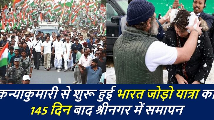 Bharat Jodo Yatra: राहुल गांधी (Rahul Gandhi) ने सोमवार को श्रीनगर में कांग्रेस कार्यालय में तिरंगा फहराकर भारत जोड़ो यात्रा का समापन किया। यात्रा 145 दिन पहले 7 सितंबर को कन्याकुमारी से शुरू हुई थी। राहुल श्रीनगर के शेर-ए-कश्मीर क्रिकेट स्टेडियम में पार्टी कार्यकर्ताओं को संबोधित करेंगे.